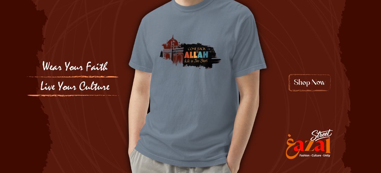 Our T-shirts blend the inspiration of Islam, the message of humanity, and the beauty of literature—bringing depth of thought and a heartfelt appeal to your style.